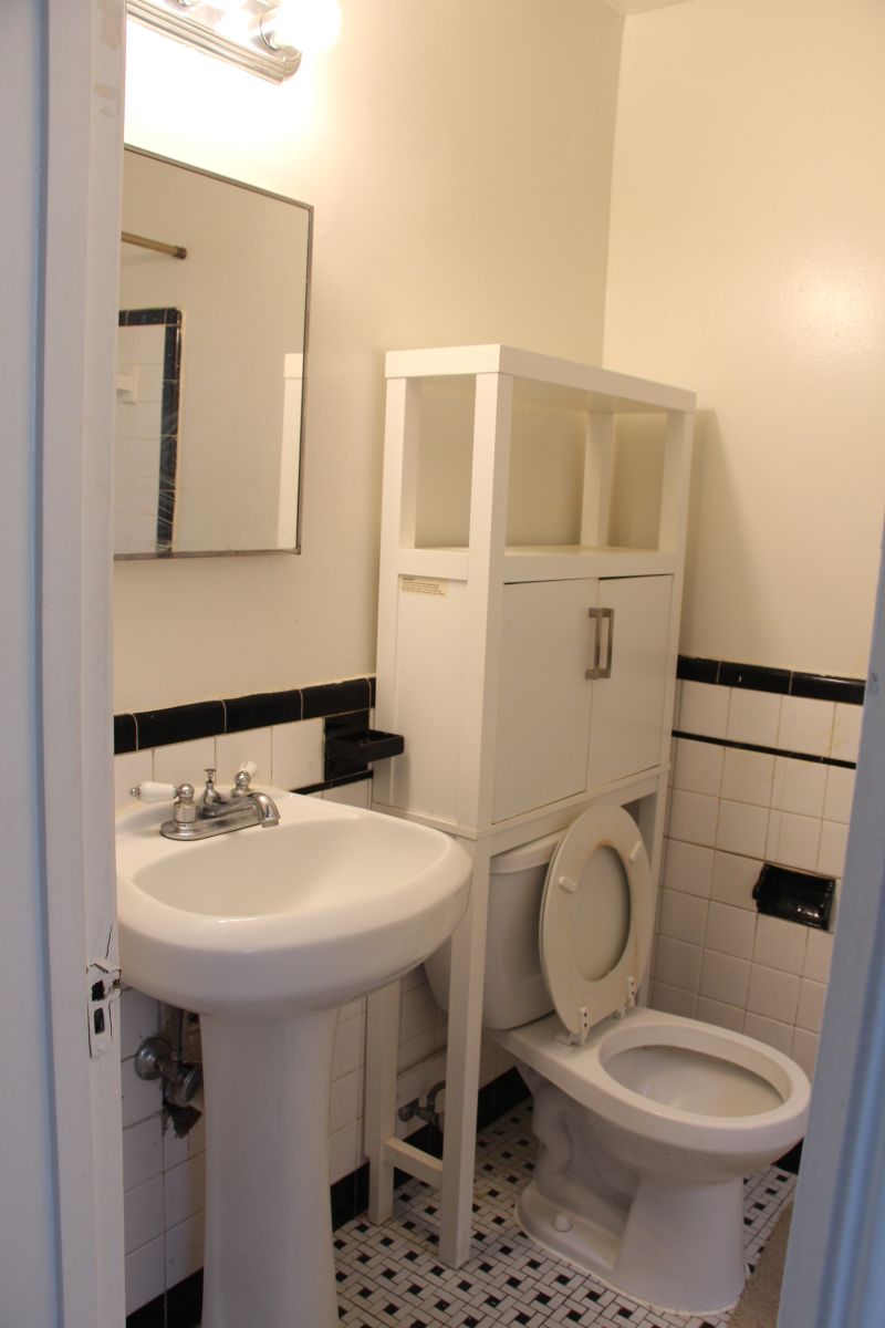 *Updated bathroom with pedestal sink and designer tiling;